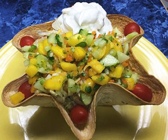 If you don’t have a tortilla shell bowl baker, try using an inverted muffin pan to make your make your tortilla salad bowls.